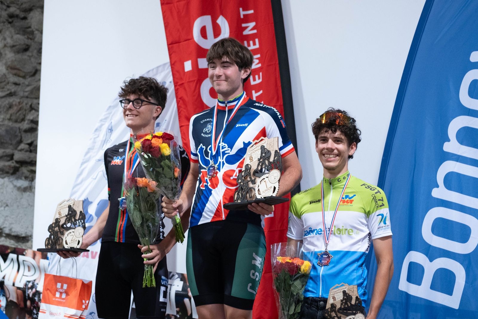 Le grand moment du week-end est venu des Juniors, avec une performance exceptionnelle de Damien, qui décroche le titre de champion national FSGT. Pourtant pas à la fête sur ce circuit, il doit faire l'effort de revenir après la bosse pour rester au contact du groupe de tête avant de porter une attaque décisive dans les derniers kilomètres. Il s’impose en solitaire, avec panache, dans un final dont il se souviendra longtemps. Baptiste, termine quant à lui 7ᵉ après avoir contrôlé la course, confirmant lui aussi les qualités du groupe (notamment le groupe jeune FFC avec Paul qui termine sur 3è). Ensemble, ils permettent une nouvelle fois à la Saône-et-Loire de s’adjuger le challenge comité dans leur catégorie.